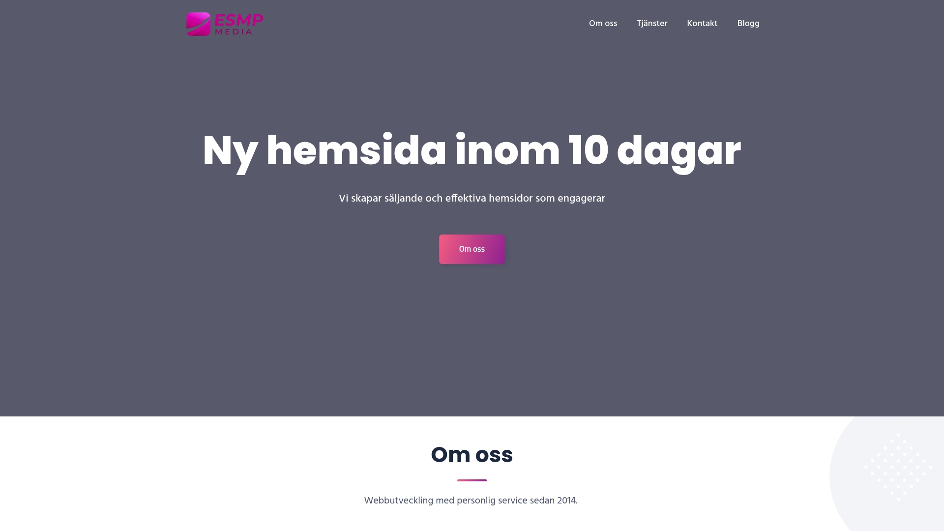 På ESMP Media hjälper vi bygg- och hantverksföretag att snabbt etablera en stark digital närvaro. Vi levererar en ny hemsida inom 10 dagar, skräddarsydd för din bransch och ditt område. Från lokal SEO till projektgallerier och innehållsproduktion, våra digitala tjänster för byggföretag är byggda för att ge resultat. Boka en kostnadsfri konsultation så berättar vi hur vi kan hjälpa just ditt företag att ta plats online och börja generera fler förfrågningar.
